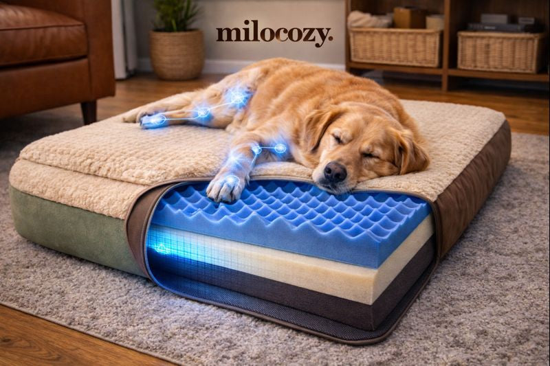 Unlike flimsy towels, the Milocozy features a High-Loft Polyfill Core that provides a critical buffer between your pet's hips and the hard ground. It offers orthopedic support without the heavy bulk of a mattress.